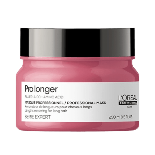 L’Oréal Professionnel Pro Longer Mask 250ml is a nourishing hair treatment for long hair with thinning ends. Enriched with Filler-A100 and Amino Acids, it strengthens, thickens, and restores hair from root to tip. The creamy formula reduces breakage, smooths split ends, and adds shine and softness, leaving hair fuller, stronger, and healthier.