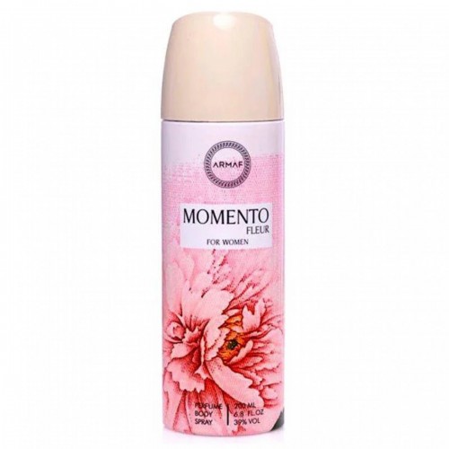 Armaf Momento Fleur is a long-lasting perfume body spray for women, featuring a luxurious floral and fruity fragrance with top notes of Mandarin, Peach, and Melon, heart notes of Magnolia, Narcissus, Jasmine, and Tuberose, and a base of warm woods and musk. The 200ml spray offers a fine, non-gas mist for easy, all-day wear, providing a fresh, elegant, and sophisticated scent suitable for everyday use.