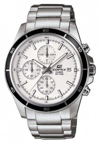 The Casio Edifice EFR-526D-7AVUDF is a stylish men’s chronograph watch featuring a white dial and stainless-steel case and bracelet. It offers a sleek, classic design suitable for both professional and casual wear.