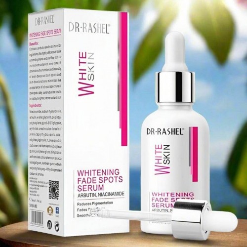 Dr. Rashel White Skin Whitening Fade Spots Serum 50ml is a facial serum designed to brighten and clarify skin. It contains arbutin and niacinamide, ingredients known for their efficacy in reducing dark spots, hyperpigmentation, and acne scars. The serum aims to even skin tone and promote a more radiant, healthier complexion. Regular use promises to gradually diminish the appearance of imperfections, leading to a brighter skin tone.