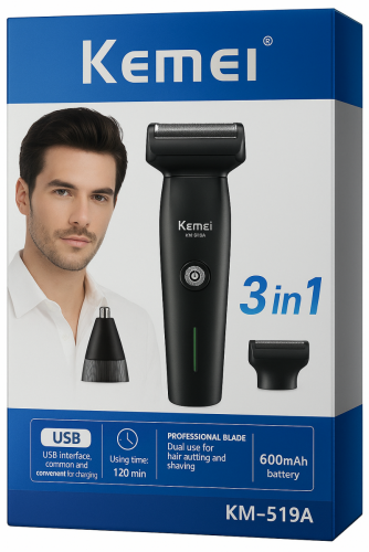 Kemei KM-519A 3-in-1 Multifunction Shaver