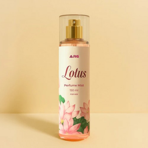 Lotus Perfume Mist for Her is a women's fragrance with floral and fruity oriental accords. It features notes of mango, cassis, peach, and apricot. The mist includes natural lotus flower extract, known for its moisturizing and soothing properties, making it suitable for all skin types, including sensitive skin.