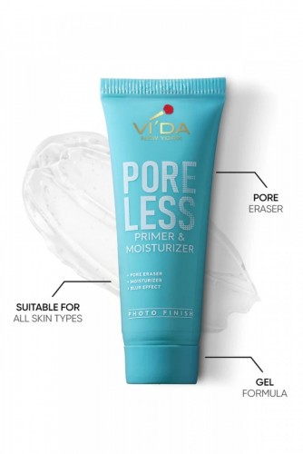 Vida Pore Less Primer & Moisturizer (22ml) is a 2-in-1 product that preps your skin for flawless makeup application while delivering essential hydration. This multitasking formula minimizes the appearance of pores, evens out skin texture, and creates a smooth base for makeup, ensuring long-lasting wear.
